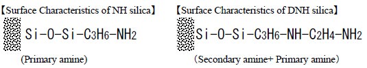 ? ?DNH硅膠鍵合的二元胺和一元胺是NH硅膠的2倍?;谶@個(gè)原因,DNH硅膠的堿度要比NH硅膠強(qiáng),并且由于碳鏈較長,DNH硅膠的氫鍵作用要比NH硅膠弱一些。因此,DNH硅膠的流動(dòng)相要選擇極性小的溶劑,因?yàn)镈NH硅膠的洗脫速度要比普通的裸硅膠和NH硅膠快。