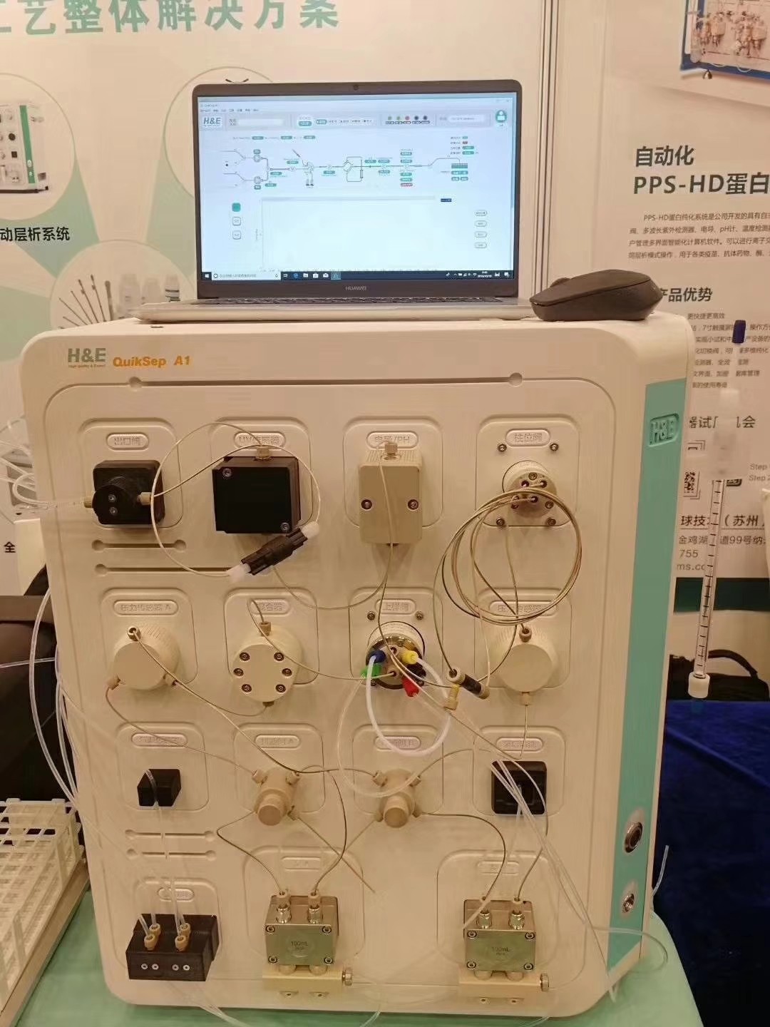 ? ? ? ?10月19日至20日,由生物制品圈、抗體圈主辦的第二屆抗體藥產業發展大會在上海龍之夢大酒店舉行?;鄣乱鬃鳛榇舜螘h的贊助商,參與了此次大會!本次大會慧德易展出了全新研發的QuikSep AutoBio全自動層析系統和Contichrom Discovery全自動層析系統。吸引了眾多客戶前來觀摩了解。