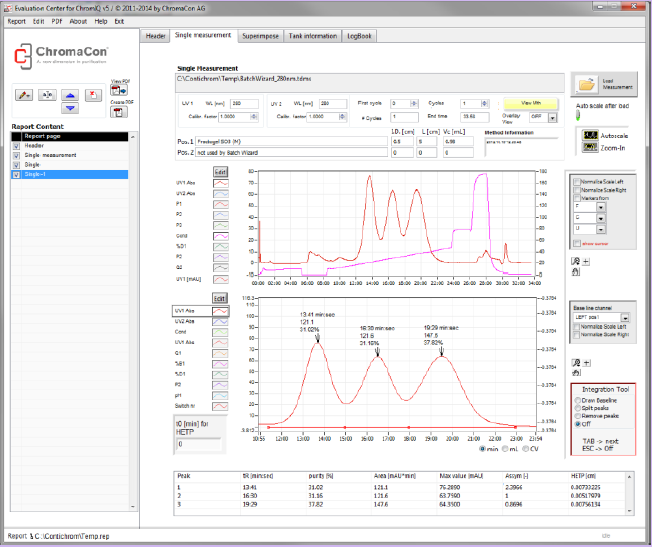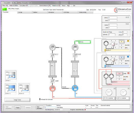 所有的Contichrom系統均具有完整的層析工藝運行能力,支持多種洗脫模式,ChromIQ軟件可以提供純化向導功能,以支持批生產工藝的設計和執行。