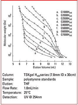 3. Hhr型色譜柱為常規的GPC色譜柱,尺寸為7.8mm ID x30cm。當使用此類常規色譜柱時,大多數的HPLC系統無需進行針對柱外峰展效應的優化。