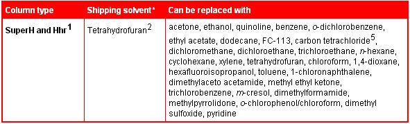 色譜柱的出貨溶劑限定了每種色譜柱可以置換的溶劑類(lèi)型。